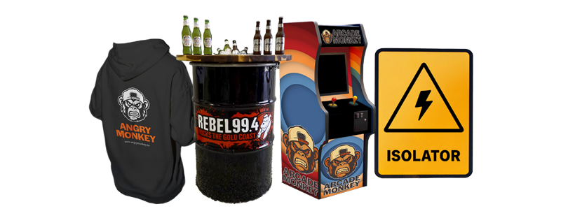 Angry Monkey, Barrel Monkey, Arcade Monkey, Label Monkey. All your drink, play, label and wear needs in one place. Everything you need - from fun to function.